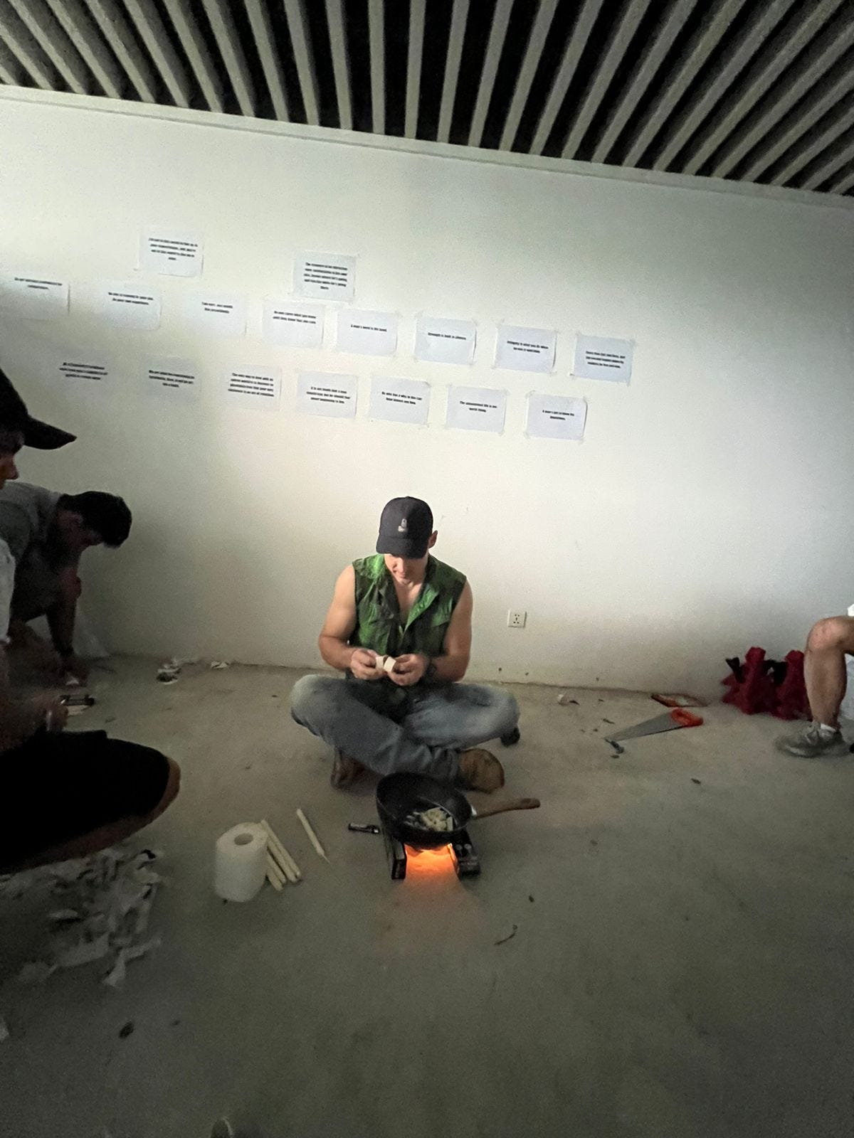 One of my favorite photos from The Network School. My “Man Camp” class and I learned to light a fire with a flint and make fire-starters out of toilet paper rolls and candlewax. Teaching has been the most rewarding path I’ve ever wandered down.
